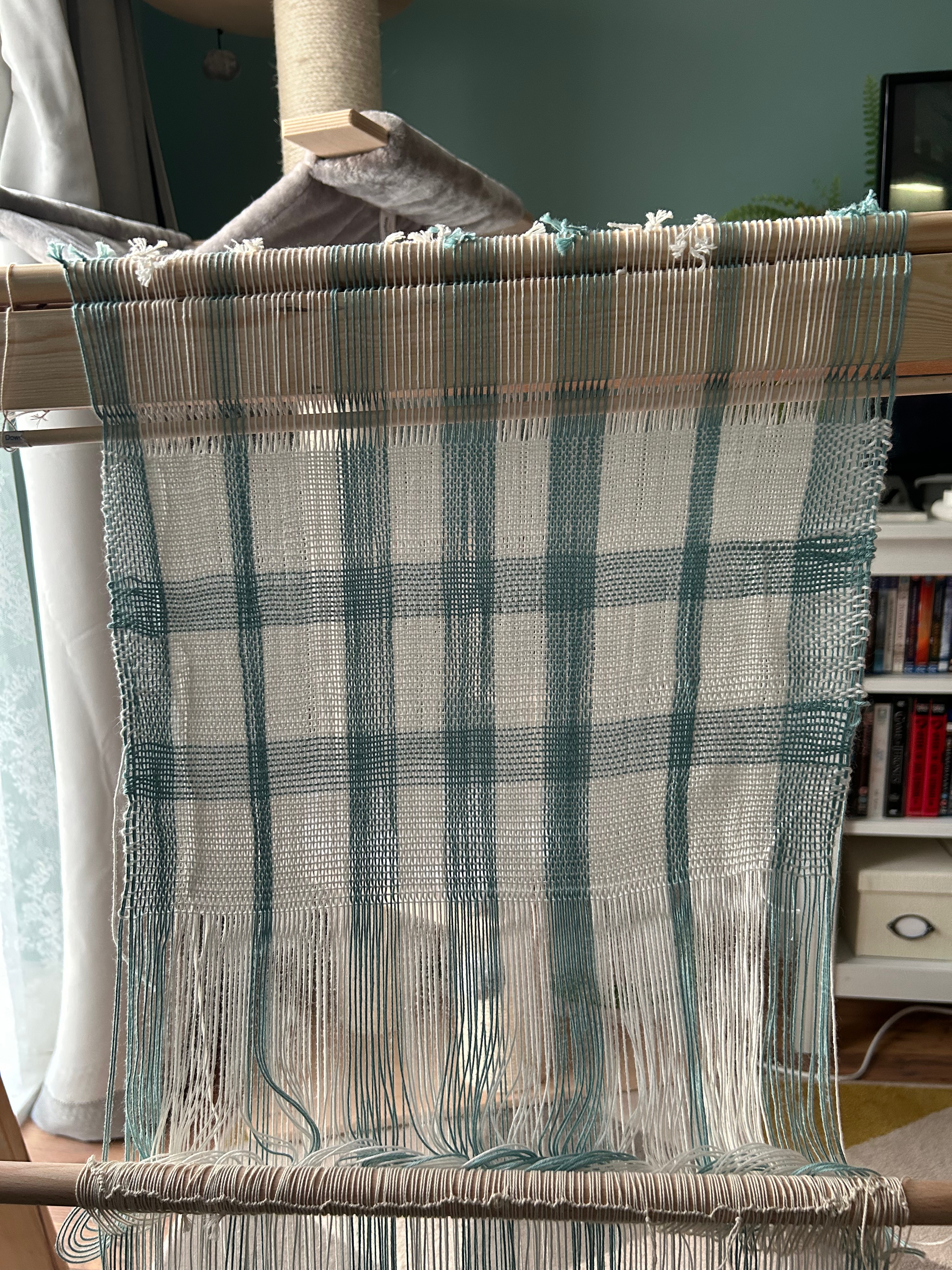 While weaving, I decided to increase the size of my weft bubble to see if that fixed the warp thread problem.